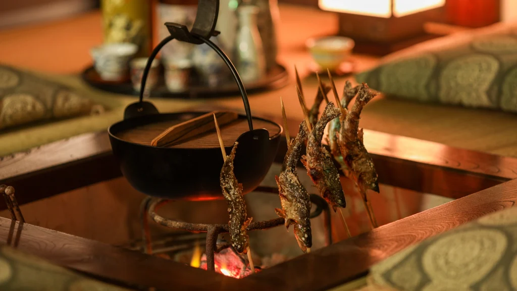 囲炉裏の暖かな雰囲気をお楽しみいただき、どうぞお寛ぎくださいませ。